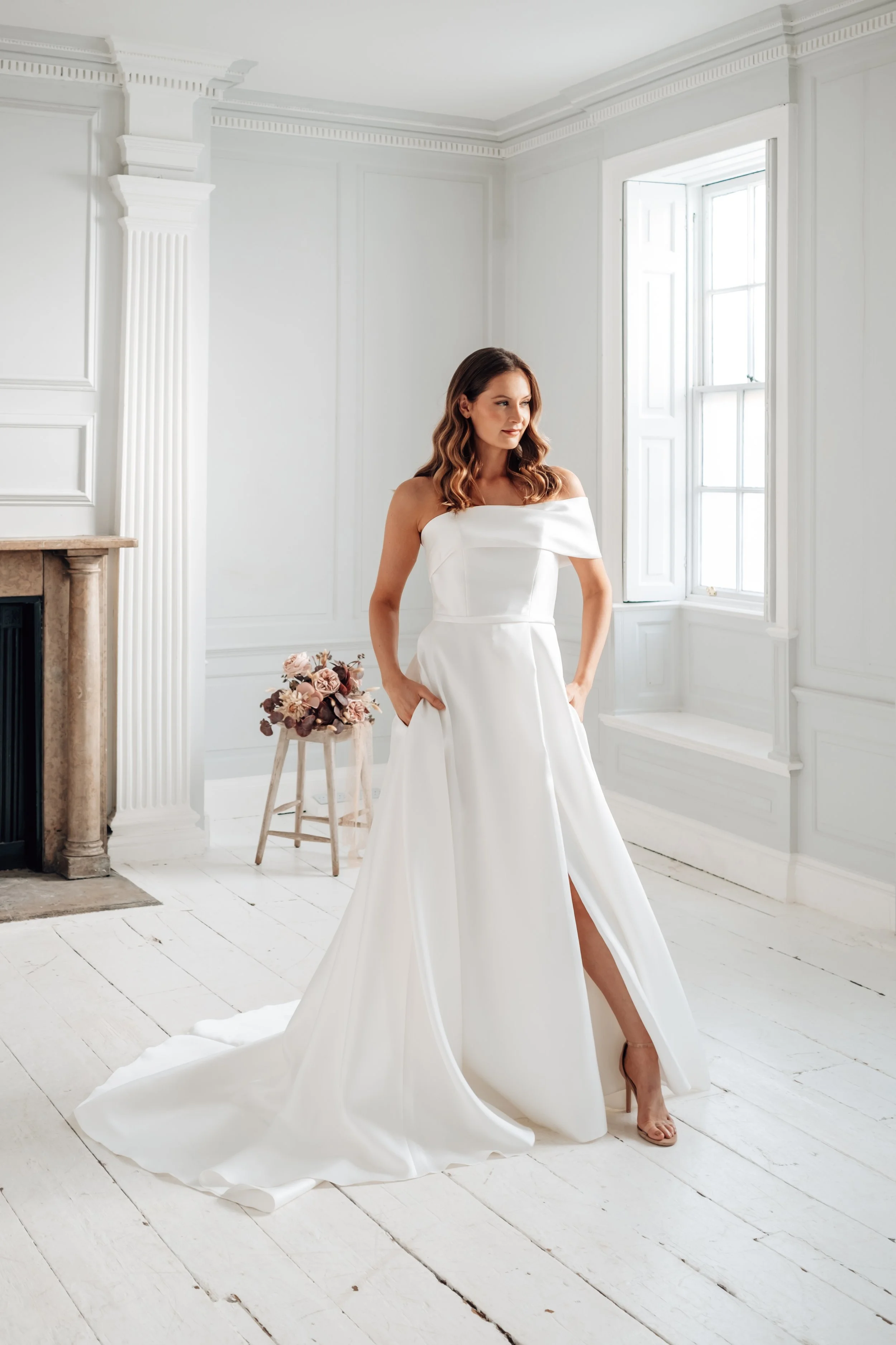 Playful, minimal wedding gown for the bride that wants a sophisticated statement wedding gown that’s comfy yet memorable.
