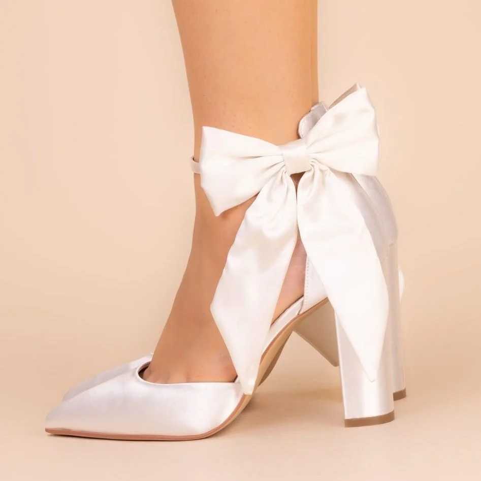 Pretty Arabella comes with the over-size bow on the ankle strap and without the platform, perfect with a tea-length dress or a fab wedding jumpsuit.